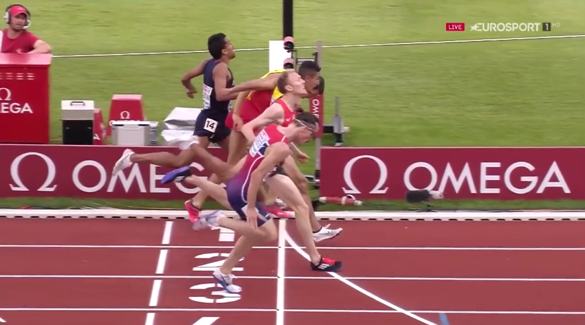 Perfeito! Então observe a foto dos 5 corredores (sim, tem 5 corredores na foto) obtida com o photofinish, e decida: quem foi o vencedor?
